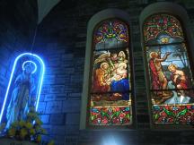 色鮮やかなステンドグラス、マリア像、神々しい雰囲気を味わうことができます。