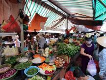 バックパッカー街と呼ばれるファングーラオエリア。その名前に由来している通りが、「ファングーラオ通り」です。通りは9月23日公園と並行して走っていて、市内を網羅するバスターミナルもあります。終点には青果、生鮮、日用雑貨店がひしめくタイビン市場があり、地元の人々の生活臭を感じることができます。