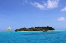 まばゆいばかりの白砂が広がるマイクロビーチ沖に浮かぶマニャガハ島は