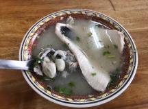 大き目のお椀で来ました。日本のラーメンのお椀を小ぶりにした感じの大きさで、ほぼお魚と、牡蠣でお椀の中がいっぱいです。