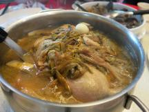 鴨丸ごとと白菜、干し魚で煮込んだ店一押しの砂鍋鴨