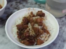 ほとんどの客は牛肉湯(110元)といっしょに白飯(10元)か汁だくのそぼろ肉がかかった肉燥飯(20元)注文します。