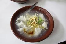向かいには台南周辺で養殖が盛んな虱目魚(サバヒ)のとろみスープの「阿鳳浮水虱目魚羹」があります。店名にもなっている虱目魚羹は淡泊な虱目魚のすり身がたっぷり入って60元。これに米粉(ビーフン)が入った虱目魚羹米粉、麺が入った虱目魚羹麺も同じく60元。