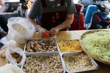 春巻作りは、たっぷりのキャベツを盛るところからスタート