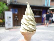 注文したのは烏龍茶味のソフトクリーム。ほんのり烏龍茶色のソフトクリームは一口食べるととてもなめらか! そして烏龍茶の風味とソフトクリームの甘みが絶妙なバランスで本当においしかったです。こんなに人気なのも納得です。日替わりで種類が変わるのでまた台南へ行ったらつい食べたくなってしまいますね。この日は平日だったので待ち時間は10分ほど、それほど待たずにすみました。