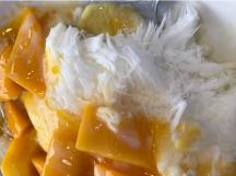 練乳とよくマッチし、とろけるフワフワミルク氷に甘いマンゴーがまったりとした濃厚なお味。