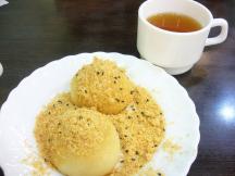 ピーナッツのお餅は低温の油で15分ほど揚げています。ピーナッツの他には砂糖と黒ごまがかかっています。油っぽいかなと思っていたら、まるで蒸したお餅のような感じ。ピーナッツの香ばしさが最高にいいです。他にはしょっぱい味のお餅もあります。