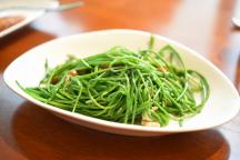 水連の葉がしゃきしゃきとおいしく炒めてあります。日本ではまず食べられない野菜です。