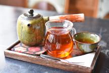 急須に熱湯を入れて、2分間蒸らしてガラスの器に淹れてから、飲みます。