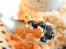 2種類のもちもちタピオカがトッピングされた、濃厚ミルクティーかき氷が美味!