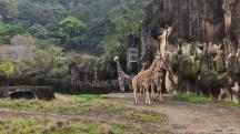 広大な土地に建てられた動物園。緑生い茂る山の中で動物たちが生き生きと生活しています。