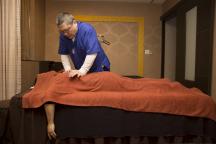 マッサージ師さんは足裏を押すだけで、睡眠不足、食事が不規則、喉の調子が悪い、などズバリと言い当てました。ていねいに押してもらって、痛気持ちいい感じ。