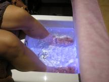 アロママサージは個室に移動し、女性の施術師が担当します。まずは指圧マッサージを15分ほどやってから、両手、首、背中、足の順でアロマオイルを塗って、全身マッサージをしてくれました。