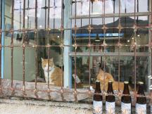 駅と猫村を繋ぐ猫橋を渡るとすぐ猫村に入ります。どこに行っても猫を見かけます。