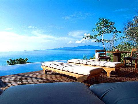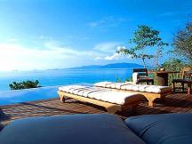 サムイ島の北東、地図で見ると角のように突き出るサムロン岬に20エーカーの敷地を使って建てられた、ロマンチックなシービューリゾート。岬の突端に位置しているため、敷地の周り約270度を海に囲まれ、まるで小さな島にいるような錯覚を覚えます。