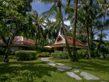 多くの5スターリゾートが、海沿いの傾斜を利用して建てられているのに対し、このリゾートは、完全にフラットなビーチサイドの広大な敷地を専有し、贅沢な間隔をとって、客室ヴィラとプール、テニスコート、スパなどの各施設が、まるで公園のようなレイアウトで配置されています。