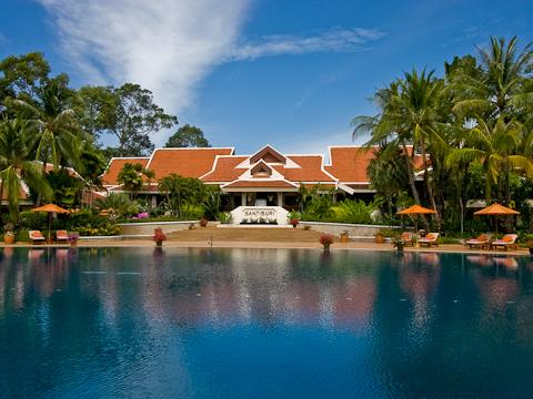 サンティブリ ビーチ リゾート、ゴルフ & スパは、サムイ島の北側、正面に隣の島「パンガン島」を望む、メナムビーチに、広大な敷地をとって建てられた、サムイ島を代表するラグジュアリーリゾート。創業20年以上になる老舗リゾートですが、根強い人気を誇り、多くのリピーターが訪れます。