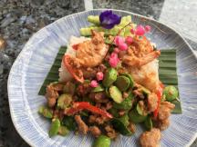 セントラルフェスティバル横のファミリーマートのすぐ近くにあるエアコン完備のカフェ&レストランです。ケーキが美味しくて人気ですが、オーナーがサムイ出身でタイ南部料理を食べることができます。カフェだけに盛り付けもおしゃれで、味も目でも楽しめます。そして、エアコン完備という貴重なお店です。ソフトドリンクもシロップが別に来たり、甘さ控えめ。お奨めは大容量のトロピカルなパッションフルーツソーダとタイ南部人のソールフード的なサトー豆と海老の海老味噌炒め。サトー豆は翌日まで口に匂いが残ります。パスタやサンドイッチなどのタイ料理以外も美味しいです。