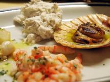 ヴェネツィアっ子と観光客でいつも賑わっているバーカロ(ヴェネツィアの居酒屋)がカ・ドーロ・アッラ・ベドヴァ。カウンターで気軽に美味しいつまみとグラスワインをひっかけるもよし。テーブル席でしっかりとヴェネツィア料理を食べることも出来ます。