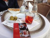 美術鑑賞の余韻に浸りながら、食前酒を楽しみましょう。歩き疲れた体を休めるにも洗練されたサービスが行き届いたフロリアンがぴったりです。ヨーロッパで一番古いカフェとも言われ、1720年創業、内装も18世紀のものが残っています。ベネチア名物の食前酒スプリッツなどは如何でしょうか。