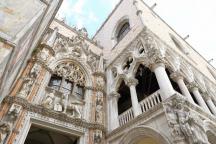 ベネチアで一番重要な観光スポットであり、町のシンボル的存在。エジプトから運ばれた聖人マルコの遺体を祀るために、9世紀に建てられました。彼の遺体は、寺院内の主祭壇に収められています。聖マルコはベネチアの守護聖人で、彼のシンボルである有翼の獅子像が、寺院正面上部の聖マルコ像の下に飾られています。ベネチア映画祭の最高賞である金獅子賞に贈られる金色の有翼獅子像は、これに由来しています。