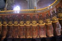 中央に、木製のレリーフや聖人の彫像で飾られた聖歌隊席が設けられています。オリジナルのまま現存するヴェネツィアでは唯一の木製聖歌隊席です。また、入口上部のブロンズの十字架像もお見逃しなく。十字架像は、フィレンツェに工房を持つマエストロにしてレオナルド・ダ・ヴィンチの師でもあった、ヴェロッキオの手になるものです。