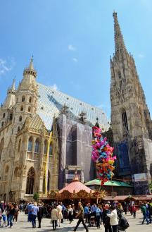 ウィーンの中心にあるシュテファン寺院へ。入場は無料。時間に余裕があれば塔に登ってウィーンの景色を楽しんでみるのもおすすめ。(要別途入場料)