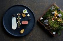 鹿肉のメインディッシュ、アーティチョークと西洋ゴボウ、ブラックベリーを使った1品(画像提供:Palais Hansen Kempinski)