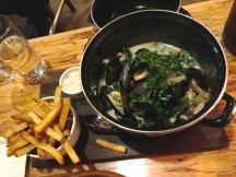 「Moules Frites」というカテゴリがあり、お料理は全部で3種類。私は、クリームソースと白ワインで蒸した物をいただいたのですが、貝のだしとソースが効いていてとても美味しかったです。