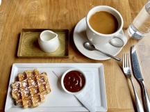 ベルギーワッフル(3.5ドル)とコーヒー(3ドル)