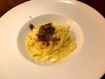 その場でトリュフを削ってくれるバターソースのパスタは、メニューにはありませんでしたが、その日のおすすめでした。ない時もあるかもしれませんが、比較的いつも提供しているようです。モダンイタリアンを謳っており、前菜は前衛的なものも多いですが、メイン料理はパスタも肉、魚もトラディショナルな感じのものが多いように思いました。