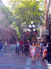 ダウンタウンの北東部にあるギャスタウン(Gastown)は、「バンクーバー発祥の地」と呼ばれており、石畳の道路、レンガ造りの建物と、レトロな雰囲気が漂っています。