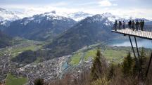 インターラーケン・オスト(東)駅裏手、アーレ川を渡ったところにある駅からケーブルカーに乗ってわずか8分で登れてしまう展望台(1322m)で、インターラーケンの街、ブリエンツ湖、そしてアイガー、メンヒ、ユングフラウのベルナーオーバーラントを代表する3山を眺めることができます。