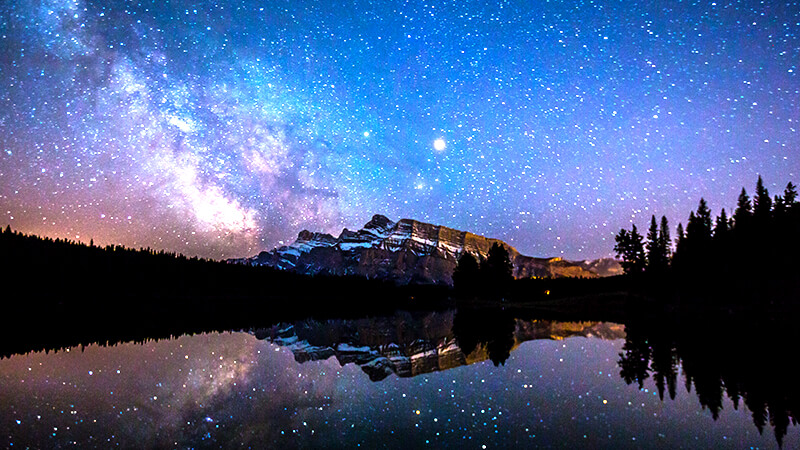 冬のカナダ・アルバータ州といえば、星空観賞は外せません。数えきれないほどの星々が目の前に広がる絶景は、アルバータ州の至るところで見ることができます。中でも、カナディアン・ロッキーの拠点であり、カナダ初の国立公園でもあるバンフ国立公園は、街からのアクセスもよく人気の観測地です。夜間照明が少ない自然そのままの環境に加え、冬はさらに空気が澄んでいるため、降ってくるような星々が見られます。日常では味わえない幻想的な世界に、思わずため息がでてしまうはず。運がよければオーロラとのコラボに出合えるかも♪ 星空観賞は旅行会社が主催するオプショナルツアーがおすすめ。観測ポイントなども教えてもらえますよ。