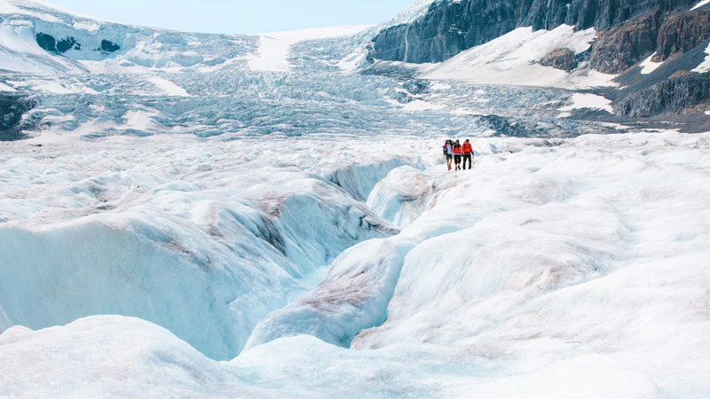 レイク・ルイーズとジャスパーの中間に位置する、カナディアン・ロッキーの定番観光地の一つ! 広大な面積を誇るコロンビア大氷原から流れ出した氷河の一つ「アサバスカ氷河」の上を散策できる、人気のアクティビティです。