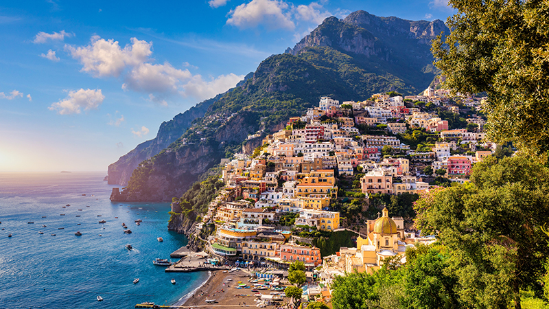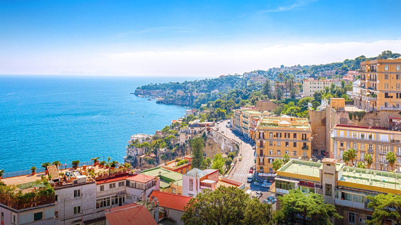 風光明媚な景観とどこか懐かしい雰囲気が絶妙にマッチした街です。ピザ発祥の地とされ、レストランやカフェが多く、グルメを楽しむのにうってつけ◎ コースには近郊のカプリ島散策も入っていて、波の状態が良ければ、船に乗ってかの有名な青の洞窟内部も見られますよ♪