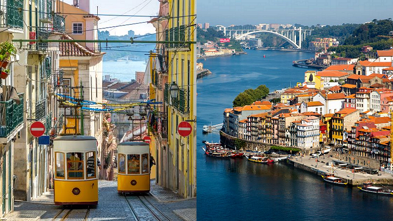 左)ポルトガルの首都リスボンは、ノスタルジックな雰囲気が漂い、海鮮料理やエッグタルトが絶品です。右)ワイン好きにはたまらない! ワイナリー巡りができる第2の都市ポルト