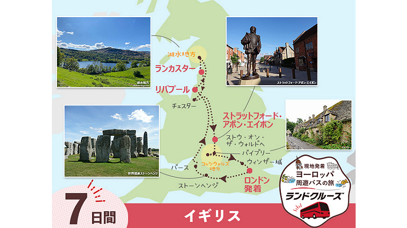 ロンドン、ストーンヘンジ、リバプール、ランカスター、湖水地方、コッツウォルズ地方と、イギリスの見どころが凝縮。歴史ある建造物が並ぶ都市と、美しい自然あふれる景観の両方を堪能できるコースです♪