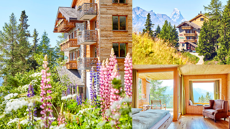アレッチ観光の拠点となる都市、ベットマーアルプの森に囲まれた静かな場所にあり、居心地の良さが評判のプチホテル。坂上の見晴らしのいい高台にあるため、マッターホルンなどアルプスの山々を一望できます。村でいちばん古いホテルで、薪の暖炉があるリビングも。「山のホテル」の宿泊をあなたもぜひ体験してみては?